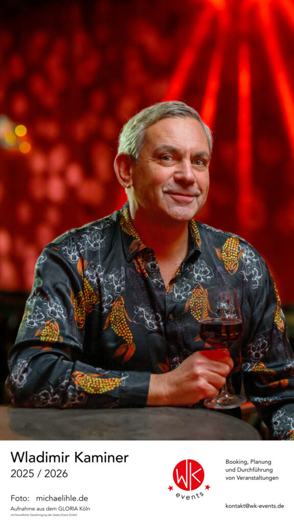 Der überzeugte Großstadt-Mensch und Hauptstädter gehört zu der Sorte Autor, die auch auf der Bühne überzeugen. Die Mischung aus familiärer Atmosphäre und seinem perfiden, manchmal sogar lakonischem Humor sorgt für einzigartige Abende. Stets in Interaktion mit dem Publikum wird gelacht, bis sich die Bauchmuskeln biegen – und trotzdem ist Wladimir Kaminer keinesfalls ein Comedian.